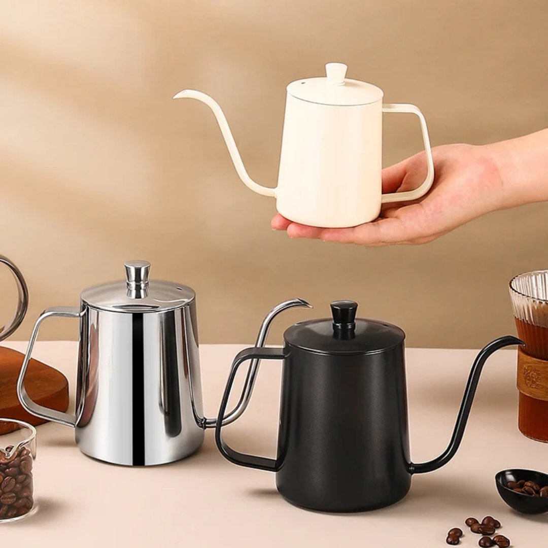 600 ml Gooseneck coffee kettle for pour over drip - available in 3 colors black , silver , white