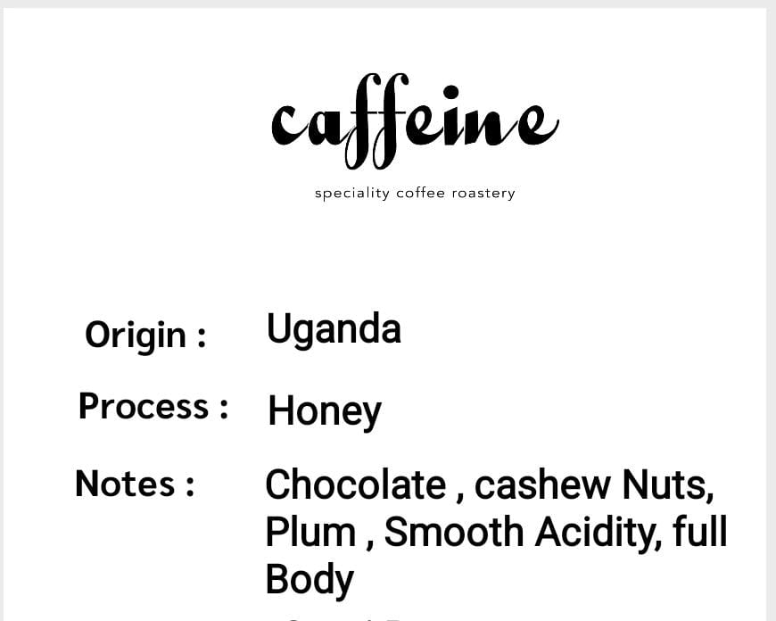 Speciality Coffee from Uganda - Honey process Notes : Chocolate,cashew Nuts, Plum,Smooth Acidity, full Body .